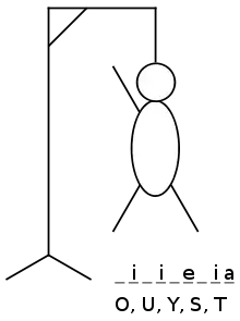 بازیِ نمونه زیر نشان میدهد چگونه یک بازیکن تلاش میکند واژه Hangman را با استراتژیای صرفاً بر اساس فراوانی حروف حدس بزند: