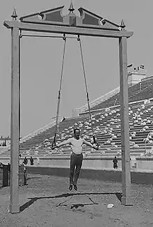 هرمان واینگرتنر بر روی دارحلقه در بازیهای المپیک ۱۸۹۶.