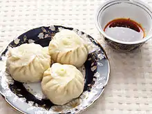 ![]() دامپلینگ سرخ شده و پر شده با گوشت چرخکرده و پیازچه، که در چین سرو میشود | |