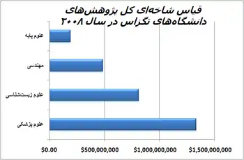 | کل بودجهٔ صرف شده جهت تحقیقات علمی در دانشگاههای تگزاس |