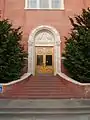 Detailed view of the front entrance to Chapman Hall, on the University of Oregon campus in Eugene, Oregon