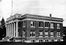 Front view of Gilbert Hall (originally the School of Commerce), on the University of Oregon campus in Eugene, Oregon