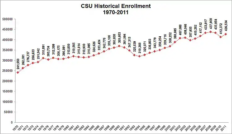 دانشگاه ایالتی کالیفرنیا افزون بر ۴۱۴٬۰۰۰ دانشجو دارد[2] که از این لحاظ بزرگترین سامانه دانشگاهی ایالات متحده است.[3]