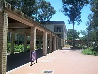 در امتداد مرکز دانشگاه کنبرا، به سمت کتابخانه