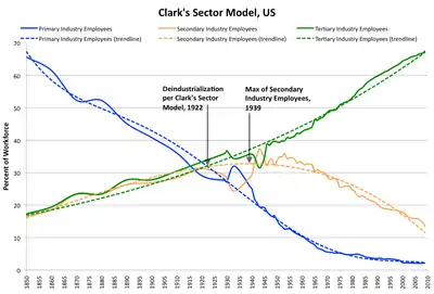 - بسیاری از تحقیقات و آمارها تأییدکننده ادعاها نیستند و در بسیاری از مواقع رشد مشاغل خدماتی متوقف یا حتی کاهش یافتهاست. ضمناً رکودهای اخیر اقتصادی این گزاره را که خدمات رشدی توقف ناپذیر دارند زیر سؤال بردهاست. (وبستر۱۳۸۳)