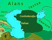 - François de Blois, Willem Vogelsang, "DAHAE" in ENCYCLOPÆDIA IRANICA, Vol. VI, Fasc. 6, pp. ۵۸۱–۵۸۲