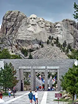 کنده کاری چهرههای شخصیتهای تاریخی آمریکا بر روی کوه راشمور در یادبود ملی کوه راشمور در این ایالت