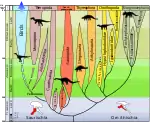 ↓خزندهکفلان ←ددپایان ←خزندهپاریختان†[پ 1] - - - - - - - - - - ↓پرندهکفلان† ←شاخپایان[پ 2] ←زرهپوشان[پ 3] | |