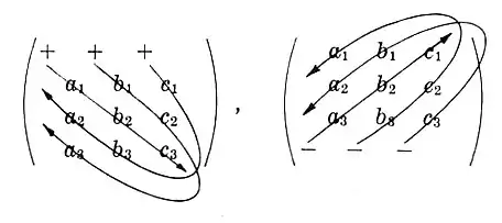 اگر یک ماتریس مربعی n-بعدی با اعضای () باشد، آنگاه دترمینان این ماتریس به صورت زیر نوشته میشود (نامیده شده به لایبنیتز):