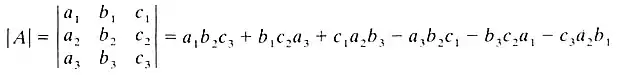 - کاربرد دیگر دترمینان ماتریس 3*3 استفاده از آن در ضرب خارجی دو بردار است به صورتی که اگر داشته باشیم , =