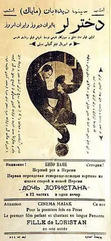 دختر لُرنخستین فیلم ناطق به زبان فارسی است. این فیلم در سال ۱۳۱۲ خورشیدی توسط اردشیر ایرانی در استودیو امپریال فیلم در بمبئی ساخته شد.[1][2] این فیلم در بین مردم با نام «جعفر و گلنار» شناخته شد. این فیلم به صورت سیاه و سفید فیلمبرداری شدهاست.[3]