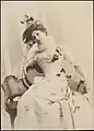 رنوآر این نقاشی را در سال ۱۸۷۴ به پایان رساند و آن را دختر پاریسی نام نهاد. مدل، بازیگر تئاتر، مادام آنریت آنریو[یادداشت 1] بود که بین سالهای ۱۸۶۳–۶۸ در تئاتر اودئون نقشآفرینی میکرد و زمانی که ۱۷ سال داشت به شهرت رسیده بود.[3]