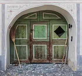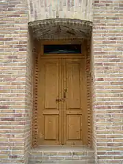 درهای سر میان درها و دروازهها اغلب با کلون و تزه و شببند و حلقه و کوبه مجهزند و نوعی از آنها با تختهها و الوارهای باری که افقی ساخته شدهاند، در دو جا کلاف و بستهبندی چوبی دارد، که با گلمیخهای زیبا استوار شدهاست.