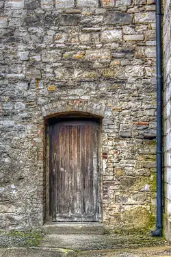- پاشنه گرد یک قطعه چوب افقی است که در پشت آستانه کوبیده شده و جای پاشنهها را در آن بریدهاند. گاهی هم پاشنه گردها جدا از هم در دو گوشه پایین در، از چوب، سنگ یا خشت پخته تعبیه میشوند.