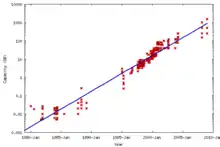 افزایش نمایی وار در حافظه دیسکها و سرعت دسترسی به اطلاعات در هارد درایوها به تولیدکنندگان تجاری قابلیت تولید دیسکهای سخت با ظرفیت ذخیرهسازی بالا برای کاربرد بهتر مصرفکنندگان ایجاد میکنند. مانند دستگاه پخش صوت دیجیتال آی پد شرکت اپل و ضبطکننده تصویری شرکت تیوو.[5] به علاوه وجود تعداد زیادی از چیپهای ذخیرهسازی بستر مناسب را برای تنوع سیستمهای که ساختارشان بر طبق صفحات وب است ایجاد کرده که در آنها به ظرفیت بسیار بالایی نیاز است. همانند سیستم جستجو و ایمیلی که توسط شرکتهای بزرگی همچون گوگل سفارش داده شدهاست.