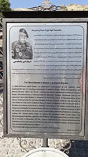 تندیس کوهنورد که در میدان سربند در محلهٔ دربند برپا است در سال ۱۳۴۱ توسط رضا لعل ریاحی، پیکرهتراش و نقاش ایرانی ساخته و سپس نصب شد.[7] ایدهٔ ساخت این تندیس در سال ۱۳۳۷ از سوی حسن وجدانخوش، از کوهنوردان با سابقه ایرانی پیشنهاد شد. سرهنگ بیات، رئیس مرکز آموزش کوهستانی ارتش، مقدمات ساخت آن را آماده کرد و «مهام»، شهردار وقت تهران، هزینه ساخت مجسمه را پذیرفت. امیر شاه قدمی، گروهبان ارتش و مربی کوهنوردی مرکز آموزش کوهستانی و مربی اسکی ایران به عنوان مدل معرفی شد و شهرداری هم مبلغ ۱۰ هزار تومان بابت ساخت مجسمه پرداخت.[7] گروهبان شاه قدمی سه سال بعد در سال ۱۳۴۰ در عملیات مربوط به نجات سرنشینان هواپیمای آمریکایی سقوط کرده در قله زردکوه بختیاری به ارتفاع ۳۸۷۰ متر در سرمای ۳۰ درجه زیر صفر که موفق به نجات افراد آن گشت، از رئیسجمهور وقت آمریکا (کندی) مدال لیاقت نیز دریافت کرد. سرهنگ شاه قدمی در سال ۱۳۹۱ در ۸۰ سالگی در تهران درگذشت.[8]