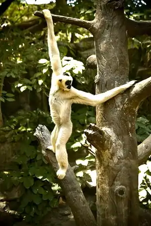 گیبونها تقسیمگرهای خوبی هستند. دستوپای درازشان آنها را قادر میسازد تا به راحتی تاب بخورند و شاخهها را به چنگ آورند.