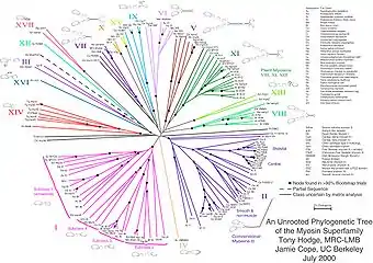 - Hodge T, Cope M (1 October 2000). "A myosin family tree". J Cell Sci. 113 Pt 19 (19): 3353–4. PMID 10984423.