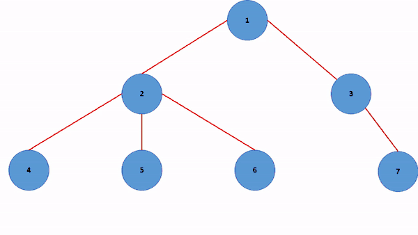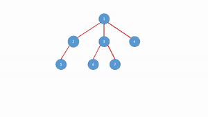 در این شکل ۱ به عنوان ریشه انتخاب شدهاست، ۲ و ۳ فرزندان ۱ هستند، ۲ فرزندی ندارد و ۴ و ۵ فرزندان ۳ هستند. این درخت را به گونهای دیگر نیز میتوان نشان داد.