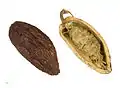 دانههای کاکائو در داخل غلاف