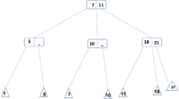 - سه فرزند دارد و درج چهار فرزند برای مجاز نیست. یک برادر سمت چپ مثل برای ایجاد میکنیم دو فرزند کوچکتر را فرزند آن قرار میدهیم. را هم به صورت بازگشتی در سطح بالاتر درخت درج میکنیم.