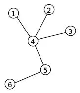 درخت نمایش داده شده در شکل بالا ۶ رأس، ۱–۶ = ۵ یال دارد. مسیر سادهٔ یکتا که رأس ۲ را به ۶ وصل میکند ۶-۵-۴-۲ است.