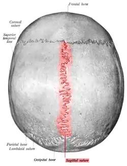 - مشارکتکنندگان ویکیپدیا. «Sagittal suture». در دانشنامهٔ ویکیپدیای انگلیسی، بازبینیشده در ۸ نوامبر ۲۰۱۶.