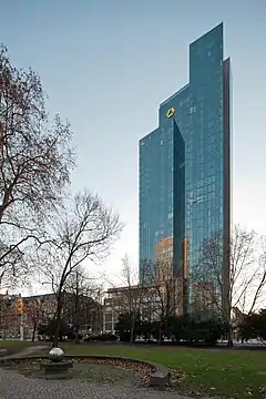 ساختمان مرکزی کومرتسبانک که درسدنر بانک در آن ادغام شد واقع در فرانکفورت