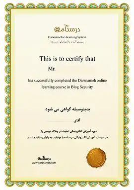 در پایان هر دوره و در صورت موفقیت در آزمونهای کلیه دروس، گواهینامه رسمی سایت درسنامه برای کاربر از طریق ایمیل ارسال میگردید.