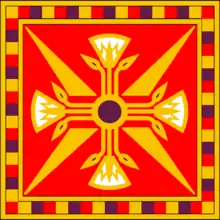 گل دوازدهپر گاهشمار شاهنشاهی که در مرکز درفش کاویانی قرار دارد.