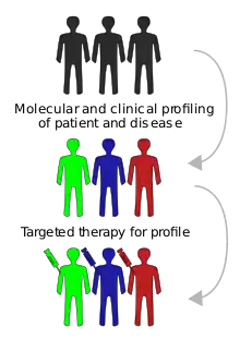 درمان هدفمند یا درمان هدفمند در سطح مولکولی (به انگلیسی: molecularly targeted therapy) یکی از روشهای درمانی مهم پزشکی (دارودرمانی) در سرطان است. روشهای دیگر شامل هورموندرمانی و شیمیدرمانی کشندهٔ سلول (cytotoxic) است. به عنوان یک از انواع پزشکی مولکولی، درمان هدفمند رشد یاختههای سرطانی را با دخالت در مولکولهای ویژه مورد نیاز برای سرطانزایی و رویش تومور متوقف میسازد،[1] این موضوع بر خلاف روش سنتی یمیدرمانی اتس که کارش توقف رشد سریع سلولهای سرطانی که به سرعت در حال تقسیم و تکثیر هستند. از آنجایی که بیشتر داروهای مورد استفاده در درمان هدفمند از نوع زیستدارو هستند، گاهی واژه درمان زیستی را بهجای درمان هدفمند بهکار میبرند. هرچند، میتوان هر دو روش را با هم ترکیب کرد که در روش درمانی «ترکیب دارو-پادتن» دیده میشود.