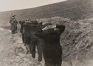 ![]() چند آموزگار لهستانی اهل بیدگوشچ توسط نیروهای فولکسدویچه زلبستشوتز به محل اعدام برده میشوند | |