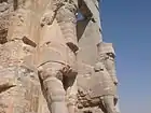 یکی از دو گاو دروازه بان و سنگ نبشته بالای آن