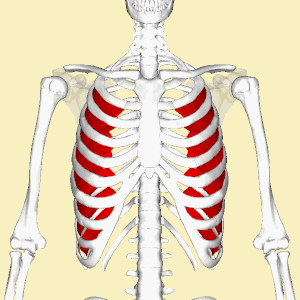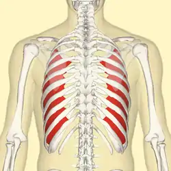 ![]() Innermost intercostal muscle (red), seen from back. | |