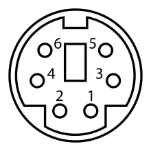 ![]() درگاههای اتصال پیاس/۲ با رنگ سبز برای ماوس و بنفش برای صفحه کلید | |||