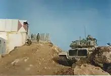 ![]() یک نفربر زرهپوش اسرائیلی در حال نزدیک شدن به یک پایگاه ارتش جنوب لبنان در جنوب لبنان، ۱۹۸۷ | |||||||
