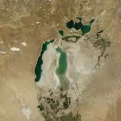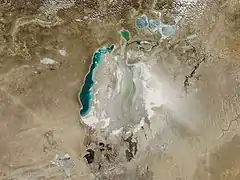 ![]() تصویر ماهوارهای دریاچهٔ آرال در سال ۲۰۱۰[1] | |