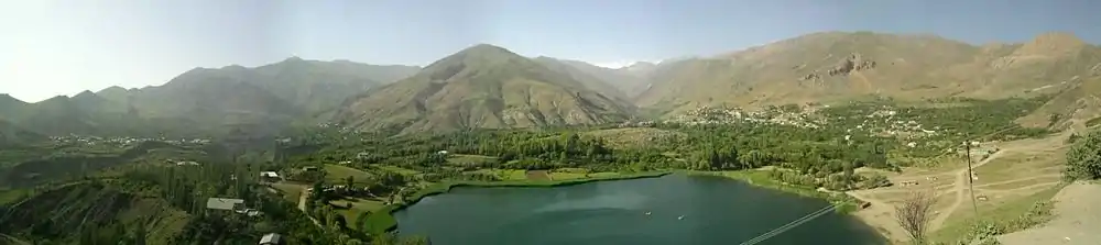 ![]() دریاچه اوان که با کوهها محصور شدهاست | |