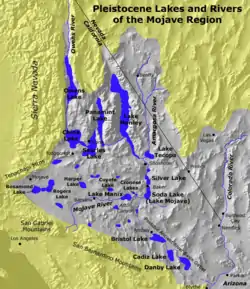 طی دوره یخچالی اواخر پلیستوسن چندین دریاچه یخچالی در جنوب غربی ایالات متحده آمریکا شکل گرفته است. دریاچه بونویل در غرب یوتا یکی از این دریاچهها بوده که مساحتی در حدود ۴۹٬۰۰۰ کیلومتر مربع را میپوشانده است. این دریاچه در بیشترین سطح آب خود حدود ۳۰۰ متر بالاتر از دریاچه نمک یوتا بوده است.