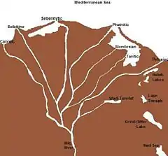![]() Map of the دلتای نیل showing Lake Timsah at center right. | |