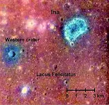 اینا فرورفتگی نیمهمدوری است با ۳۰ متر ژرفا و رؤیت آن از زمین دشوار است. در نوامبر ۲۰۰۶ ستارهشناسان این گمان را مطرح کردند که اینا باید نتیجه یک انفجار گازی در دست کم ۱۰ میلیون سال پیش باشد.