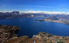 ![]() نمای دریاچه از کوههای آلپ و مونته روزا از بالای لاونو-مومبلو | |