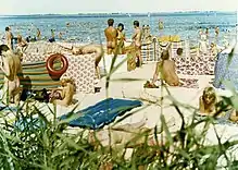 - مشارکتکنندگان ویکیپدیا. «Nude beach». در دانشنامهٔ ویکیپدیای انگلیسی، بازبینیشده در ۱۷ ژوئیهٔ ۲۰۱۲.