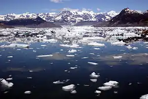- مشارکتکنندگان ویکیپدیا. «Sea ice». در دانشنامهٔ ویکیپدیای انگلیسی، بازبینیشده در ۱۷ مارس ۲۰۱۵.