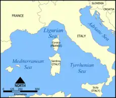 مشارکتکنندگان ویکیپدیا. «Ligurian Sea». در دانشنامهٔ ویکیپدیای انگلیسی، بازبینیشده در ۷ آوریل ۲۰۱۱.