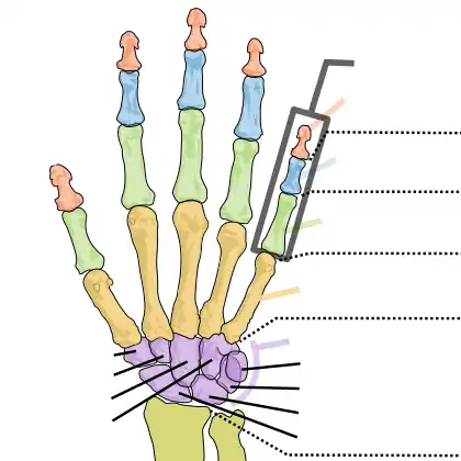 در انسان هر یک از دستها ۲۷ استخوان و شمار متناظری از مفصلها را دارد. استخوانهای دستها در مجموع تقریباً یکچهارم شمار کل استخوانهای بدن را تشکیل میدهند. ۳۴ ماهیچه حرکات انگشتان را کنترل میکنند در کف دست و ساعد قرار دارند. در خود انگشتان ماهیچهای وجود ندارد. حدود یکچهارم قشر حرکتی مغز به عضلات دستها اختصاص دارد.[5]
