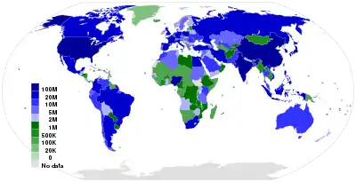 - "ICT Facts and Figures 2005, 2010, 2016". Telecommunication Development Bureau, International Telecommunication Union (ITU). Retrieved 2015-05-24.