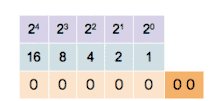 - ۱۰۰۱۰۱2 = [۱ × ۳۲] + [۰ × ۱۶] + [۰ × ۸] + [۱ × ۴] + [۰ × ۲] + [۱ × ۱]