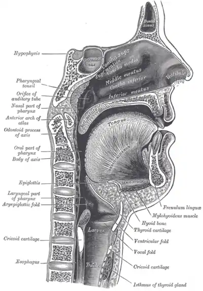 پس از جویده شدن غذا، زبان بالا میرود و به کام میچسبد. پس از آنکه گیرندههای مکانیکی گلو تحریک شدند زبان کوچک نیز بالا میرود و راه بینی را میبندد. اپیگلوت نیز راه نای را بسته و به این ترتیب غذا وارد مری میشود و توسط حرکات دودی ماهیچههای حلقوی مری به دهانهٔ معده میرسد. این بخش که کاردیا نام دارد در حالت عادی منقبض بوده و مانع بازگشت غذا از درون معده به مری میشود. وقتی امواج دودی به کاردیا میرسند باعث بازشدن آن و ورود غذا به درون معده میشوند. آنگاه معده توسط آنزیمها و حرکات خود غذا را به مادهای خمیری به نام کیموس تبدیل میکنند.