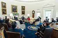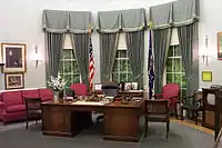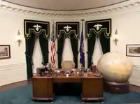 ![]() شبیه سازی دفتر بیضی روزولت در موزه و کتابخانه ریاست جمهوری فرانکلین روزولت |